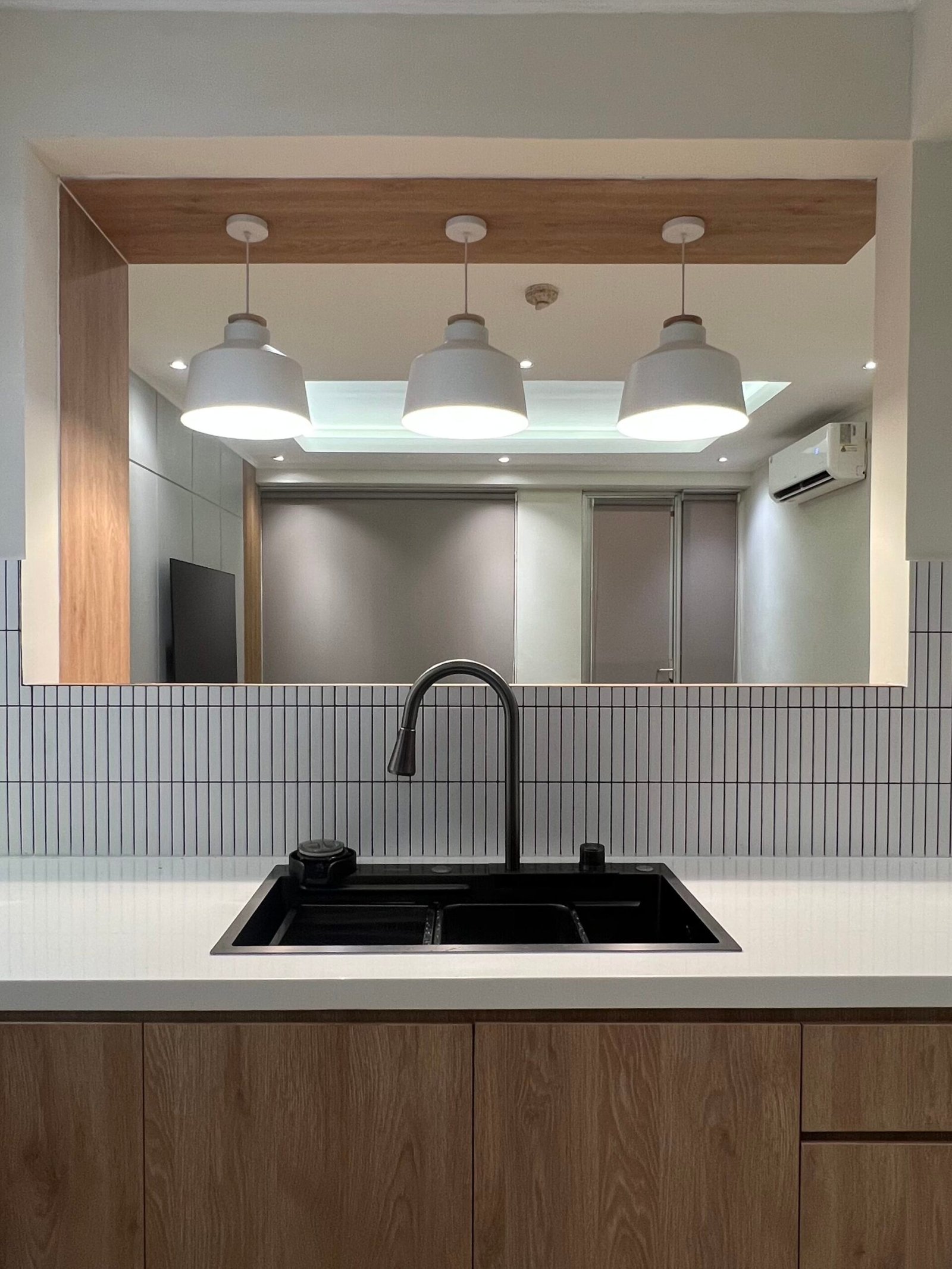 Pencahayaan merupakan elemen penting dalam desain interior. Pada proyek ini, lampu downlight ditempatkan secara strategis untuk menghadirkan cahaya yang merata dan tidak menyilaukan. Hasilnya, ruangan terlihat lebih hangat, elegan, dan menenangkan.